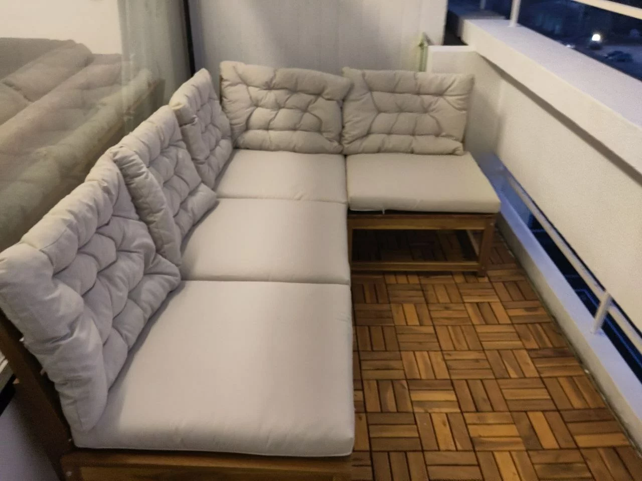 Loggia: breites Sofa, Sonne in erster Tageshälfte